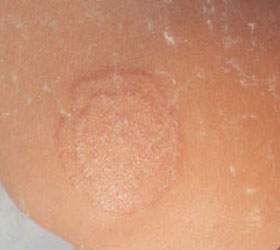如未及时治疗,损害向周围蔓延扩大,病损的中心渐渐自动愈合,向周围发展,红斑的边缘炎症比较明显,上面可有活动性皮疹、水疱、痂皮,甚至糜烂,中央自愈,形成环形或半环形。严重者常扩展波及股内侧、会阴或肛门周围,其下缘多甚清晰。有时尚可波及阴囊、阴茎根部等处。